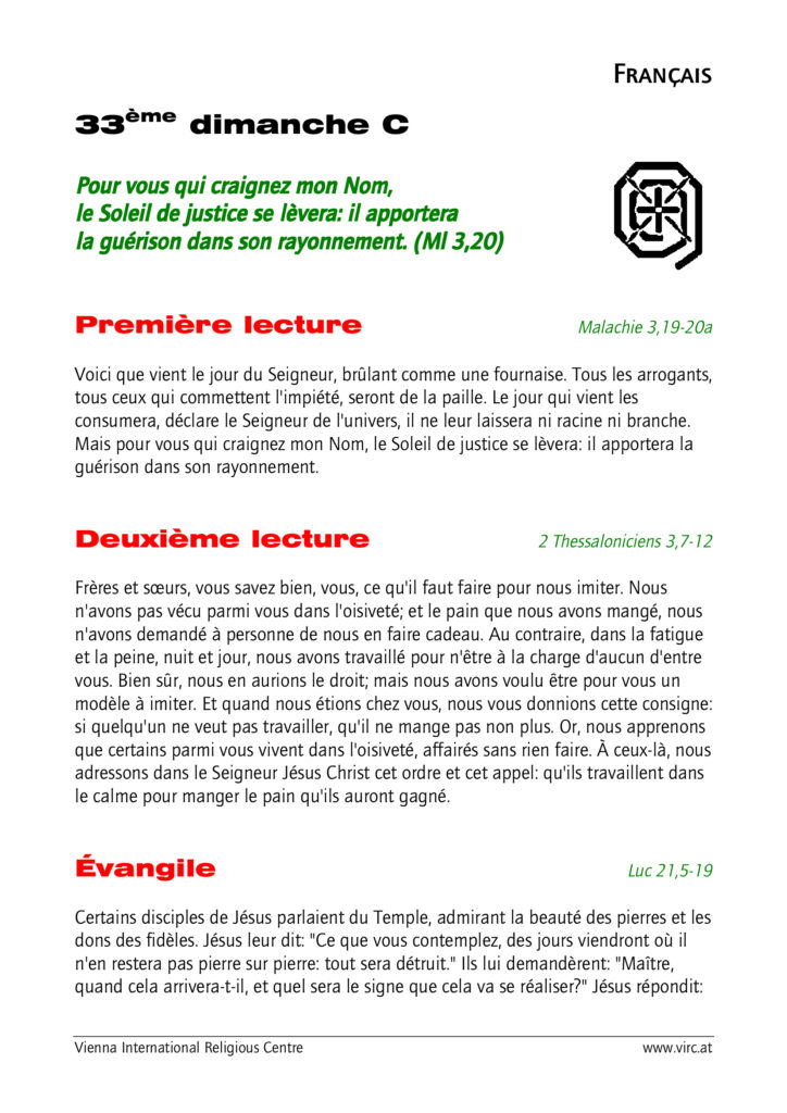 Lectures du dimanche 16 novembre 2025 (33ème dimanche du Temps Ordinaire, année C)