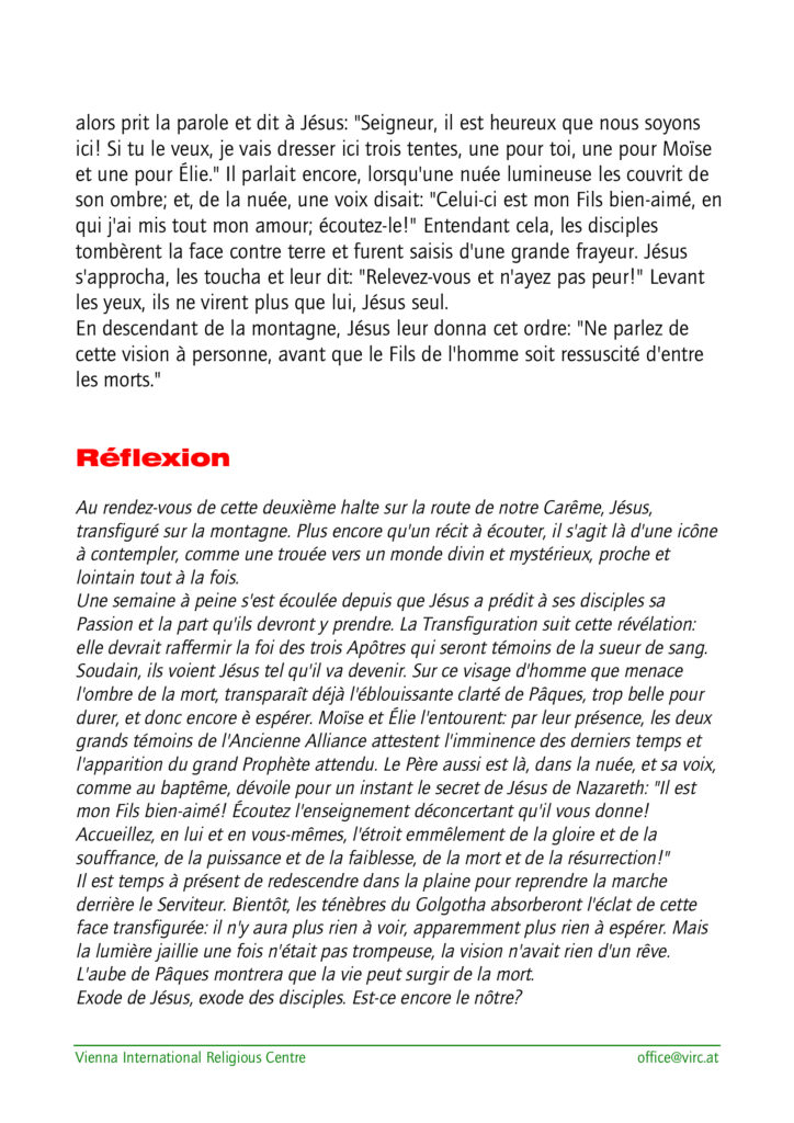 Lectures du dimanche 1er mars 2026 (2ème dimanche de Carême, année A) Publication publiée :24 février 2026 Post category:Actualités Lien vers le commentaire du jour : Garder le silence Lectures selon le « Vienna International Religious Center » : Laisser un commentaire Annuler la réponseVous devez être connecté pour publier un commentaire.